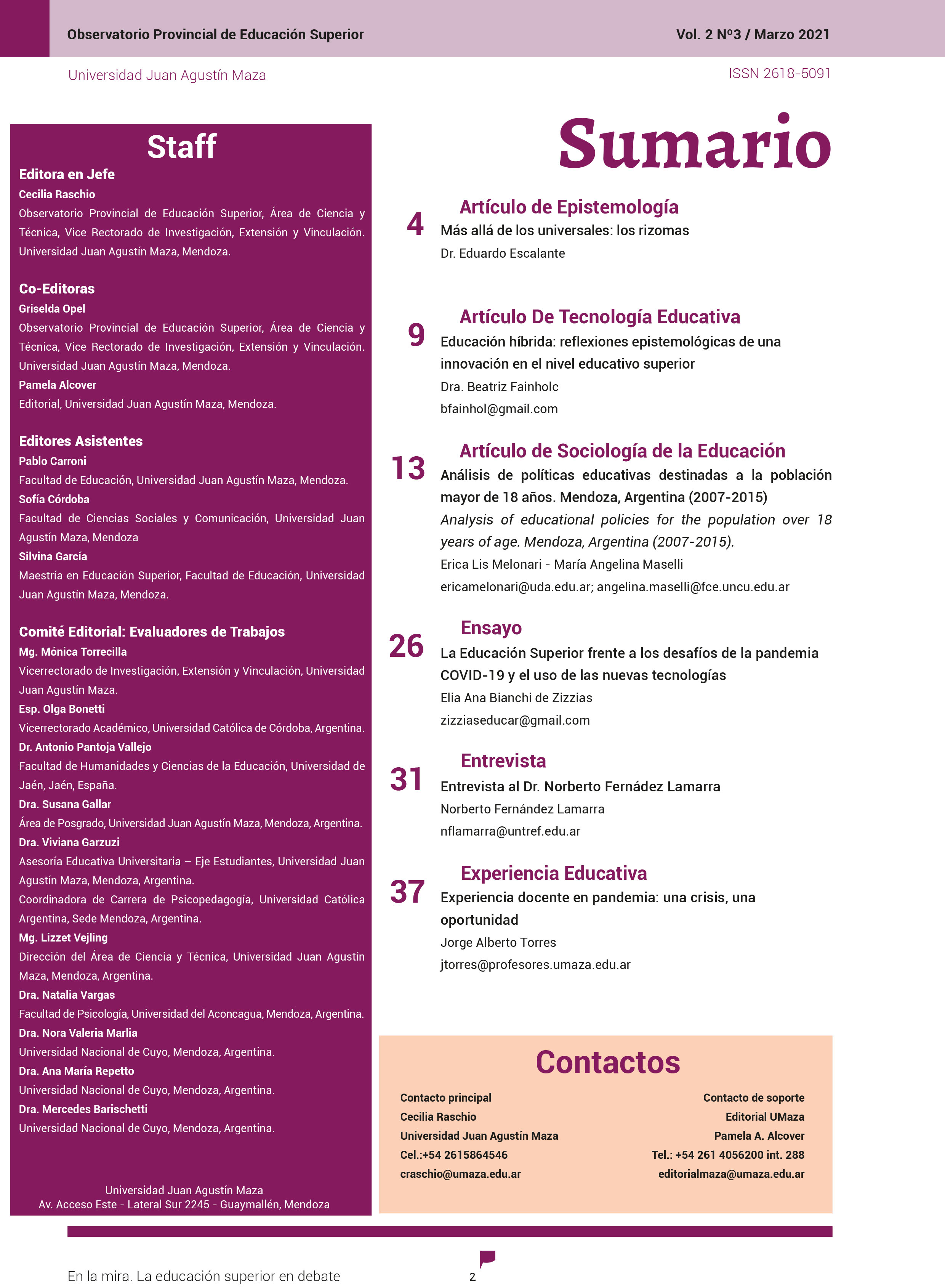 Raschio, C. (2021). Sumario. Revista En La Mira. La educación Superior En Debate, 2(3), 2–3. Recuperado a partir de https://umaza.ojs.theke.io/enlm/article/view/353