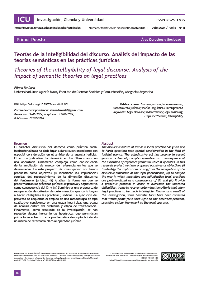 Vol. 8 Núm. 11 (2024): Nº11 - 2do Número Temático: Desarrollo Sostenible - Revista ICU. Investigación, Ciencia y Universidad (ICU)