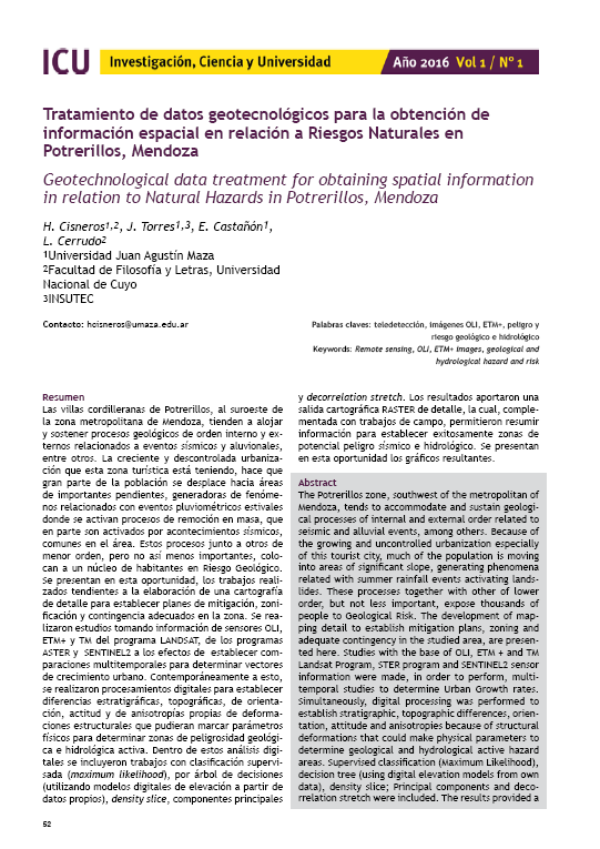 • Tratamiento de datos geotecnológicos para la obtención de información espacial en relación a Riesgos Naturales en Potrerillos, Mendoza